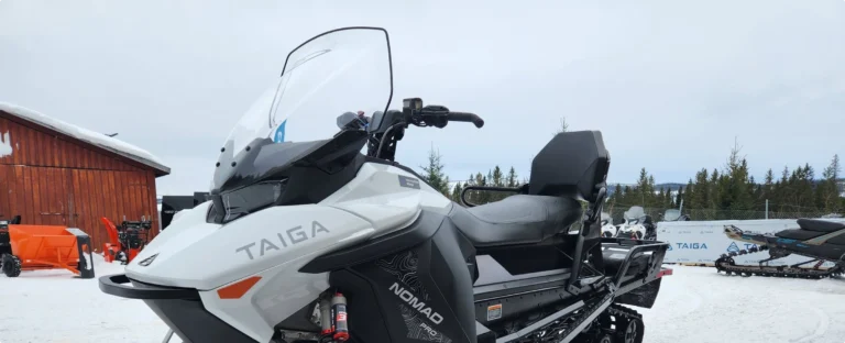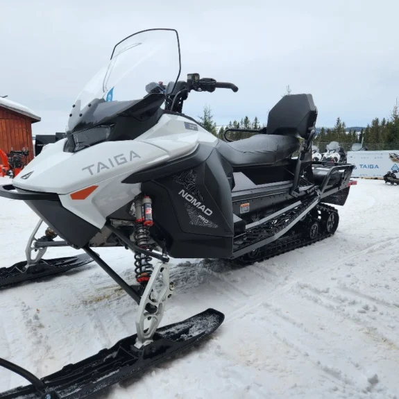 Motorbutiken Klövsjö är den första återförsäljaren av kanadensiska Taiga Motors elsnöskotrar i både Sverige och Europa. Taigas modeller används av SkiStar, Idre Fjäll, Branäs, Hemavan och Skellefteå Kraft och ingår i deras omställning mot en mer hållbar och utsläppsfri skoterflotta. Vi fick vår första leverans av Taiga Nomad i februari 2024 och dessa maskiner levererades då främst till större fjällanläggningar.